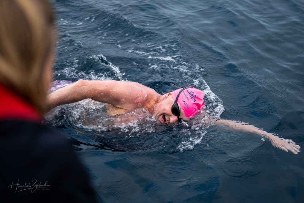 When the final stretch arrived, dense fog rolled in, visibility vanished, and the current pushed me off course. For nearly three hours, I swam blind, exhausted, and freezing, until Herschel appeared in a kayak to guide me to shore. With numb legs and full heart, I finally stood on Hokkaido, finishing in 10 hours and 4 minutes.